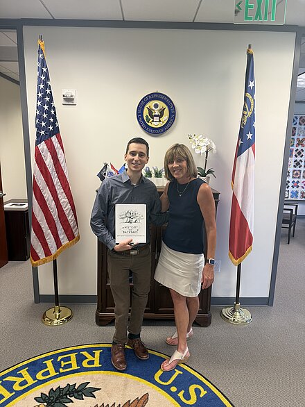 What an honor to meet with Adam Veale, Deputy Communications Director for Congresswoman Lucy McBath (GA-6)! I had the pleasure of presenting him with copies of the Student Leadership North History in our Backyard podcast book and sharing all the incredible work our student leaders have planned for the upcoming program year.